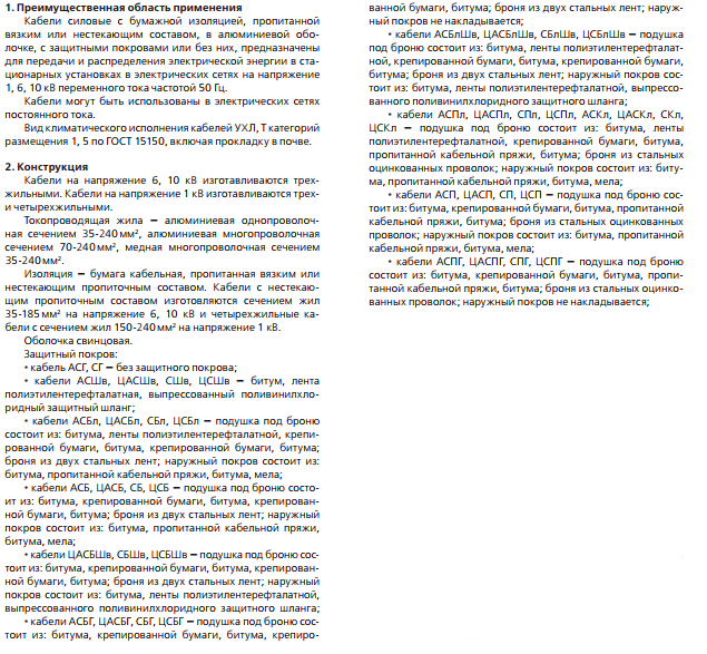 Кабели силовые с пропитанной бумажной изоляцией в свинцовой оболочке на напряжение 1, 6, 10 кВ